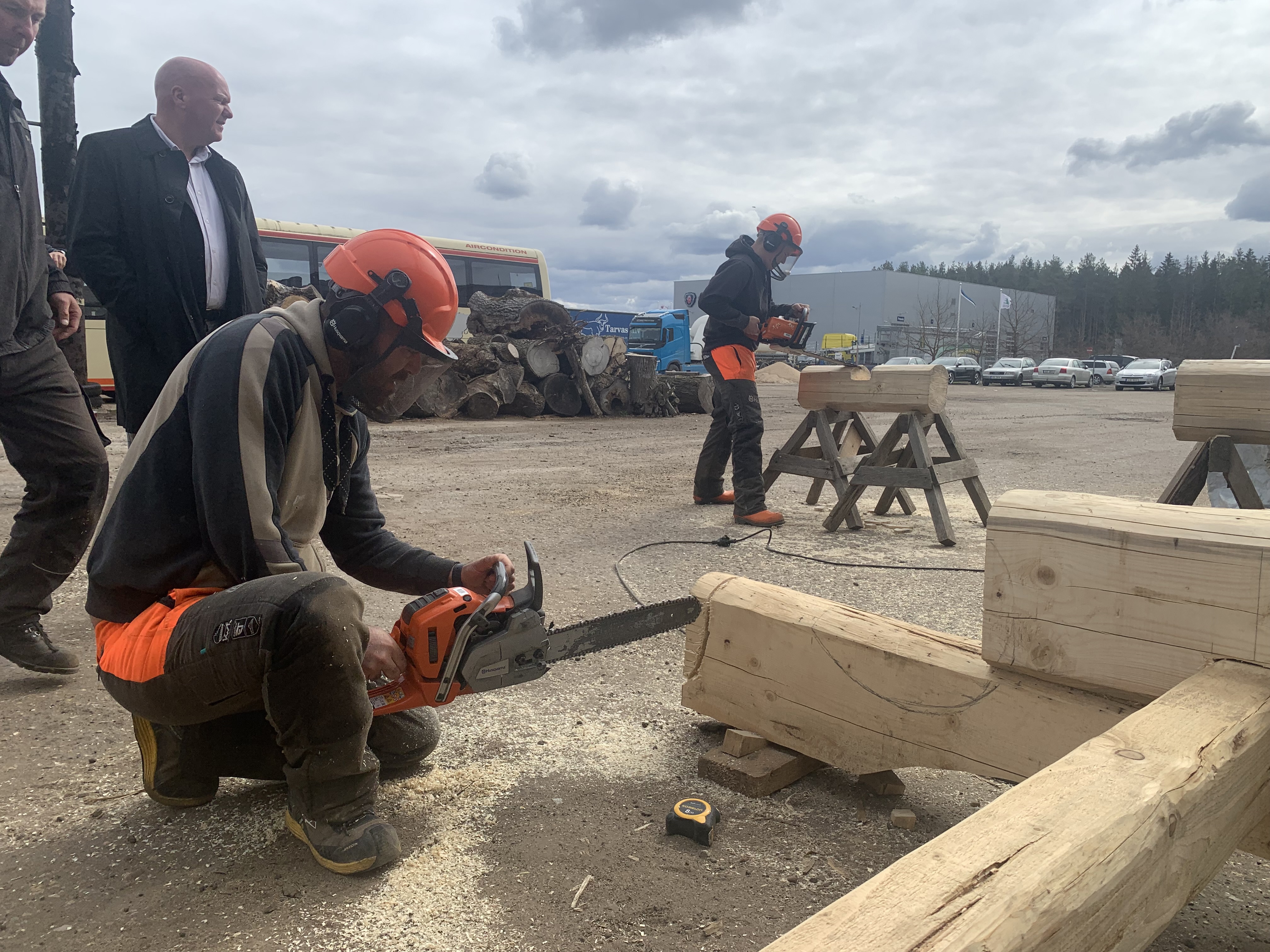 Støjen fra de andres motorsave gør det umuligt at samtale. Men det er heller ikke nødvendigt. Den estiske virksomhedsejer og tømrerlærer Taivo Tepp har fået øjenkontakt med danske Christian Rahbek. Et enkelt løft med hagen fra Taivo er signal nok for Christian. Han stopper op i sit arbejde. Giver Taivo motorsaven og følger nu med koncentreret mine, hvordan Taivo vinkler motorsaven ind på den kæmpe fyrretræs stamme. Deres blikke mødes igen. De nikker i tavs enighed, inden Christian får saven tilbage og kan fortsætte udskæringen af bjælken.